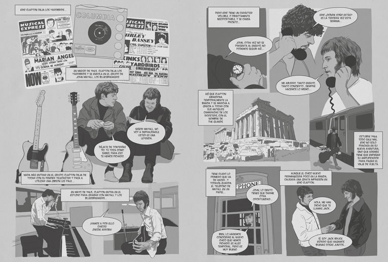 «Dicho esto, nos encaramos a una obra ilustrada e instructiva, pues el guion de Eduardo Izquierdo —compañero y, sin embargo, amigo—, se centra en esa disyuntiva del antes y después. Un cómic que de por sí, es posiblemente el formato más limitado de un libro, aquí se nos muestra lúcido, coherente y exhaustivo. El mérito de esta novela gráfica es ese, huir del populismo que envuelve a Clapton y desgranar, de forma amena, uno por uno, todos sus traumas, complejos y aberraciones mentales, que a todo esto, eran numerosas y bastante sórdidas. A ello le acompañan unas ilustraciones formidables de El Ciento, es decir, Antonio Jesús Moreno, ilustrador andaluz que realizó, entre otros, el artwork de Derby Motoreta’s Burrito Kachimba«.