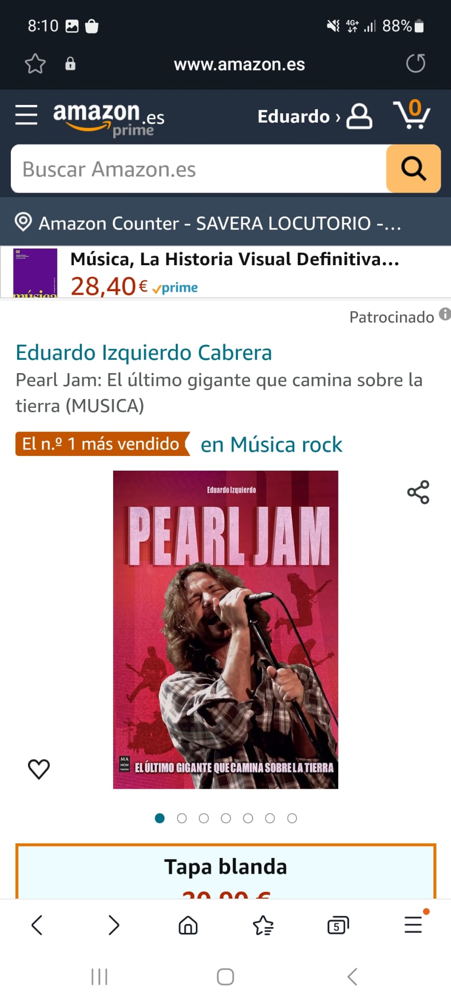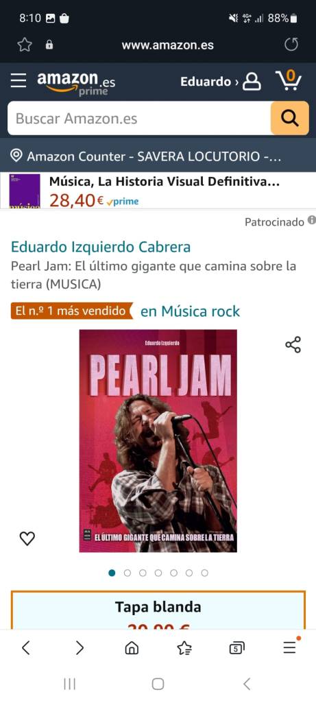 El pasado sábado, Pearl Jam. El Último Gigante que Camina sobre la Tierra, número 1 en Amazon aparecía como número 1 en cuanto a ventas de discos de rock en Amazon. Algo que nos ha hecho mucha ilusión pero, recordad, podéis encontrar también el libro en vuestra librería de confianza.