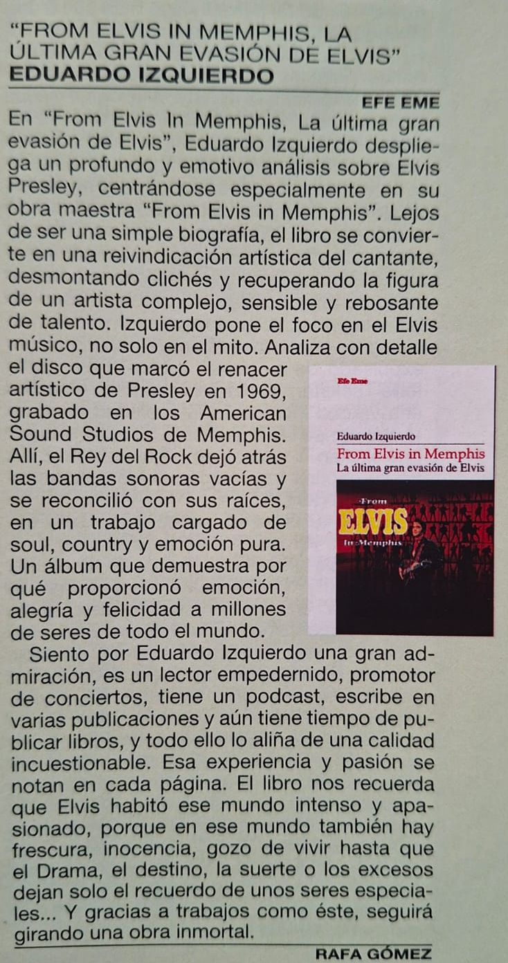 Reseña en Popular 1 de From Elvis in Memphis. La Última gran Evasión de Elvis